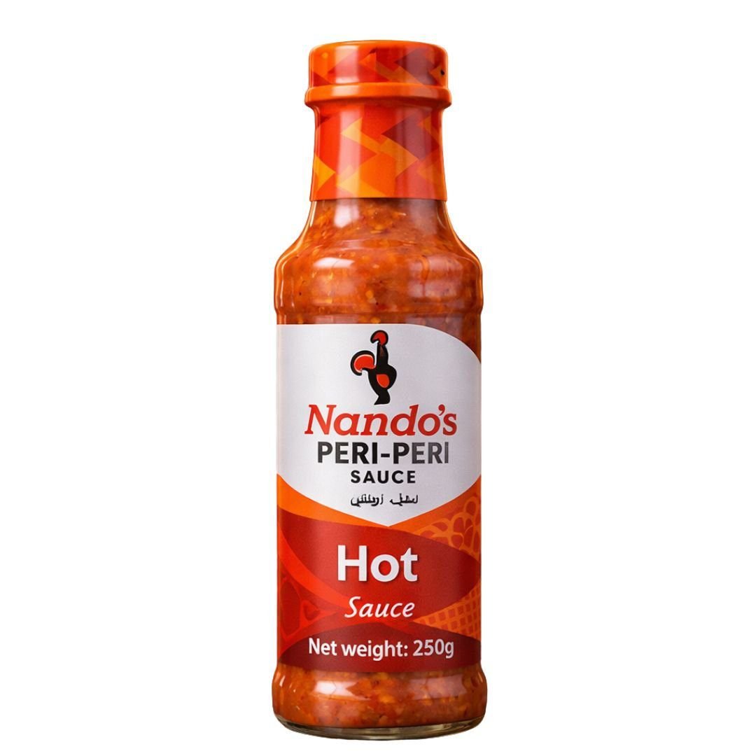 Add real heat to your meals with Nando’s Hot Peri-Peri Sauce (250g).