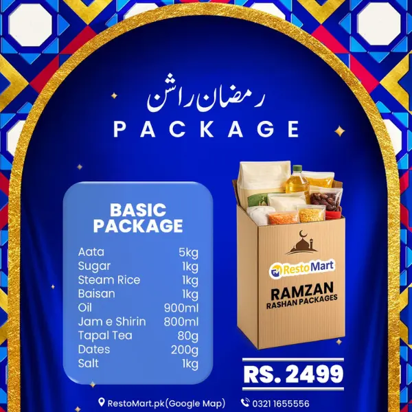 Whether you need rashan bags for Ramadan, a complete Ramzan package, or reliable items from a trusted rashan shop, RestoMart’s Ramzan Basic Package is the right choice.